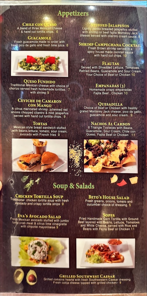Welcome to Beto's Grill, a gem nestled at 2711 Riley Fuzzel Rd in Spring, TX, where Mexican cuisine comes alive. The menu features a delightful array of hearty dishes that embody authentic flavors, perfect for any palate. Guests rave about the seafood enchiladas, which are lightly seasoned to perfection, and the beef fajita grande burrito that promises a satisfying experience with each bite.